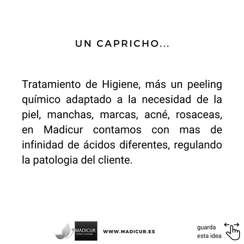 👉Tratamiento de Higiene, más un peeling químico adaptado a la necesidad de la piel, manchas, marcas, acné, rosáceas, en Madicur contamos con ácidos diferentes, adaptados a la necesidad de cada clienta.