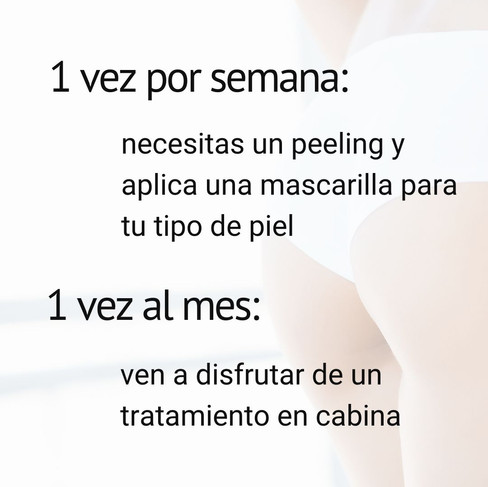 - 1 vez a la semana realizarte un peeling y 1 veces a semana aplica una mascarilla que se adapte a la necesidad de tu piel.